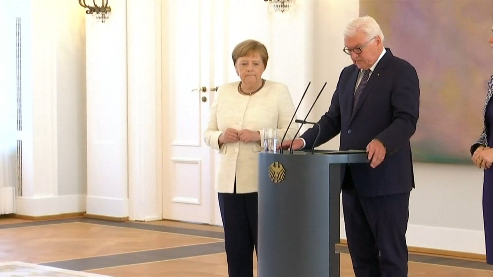בטקס בברלין קנצלרית גרמניה אנגלה מרקל רועדת Youtube